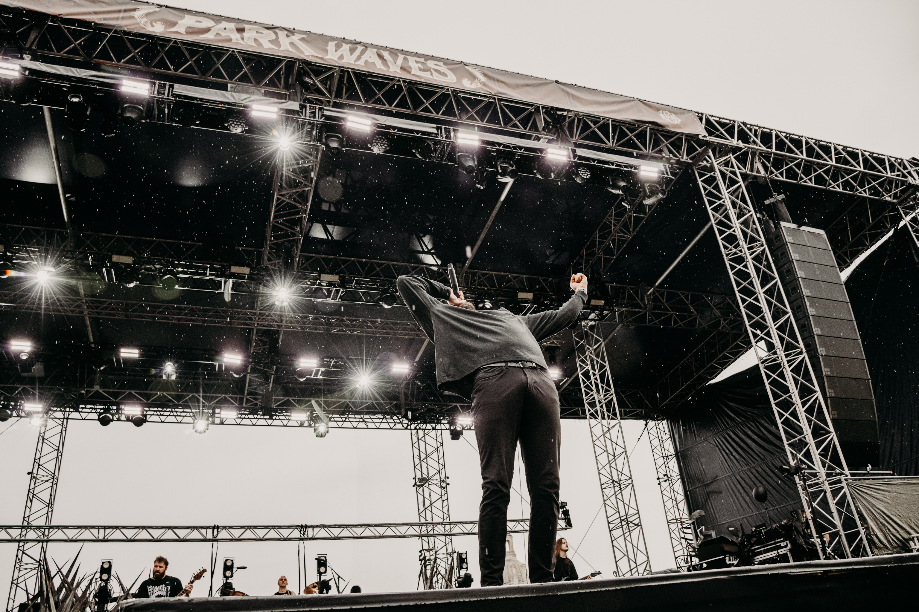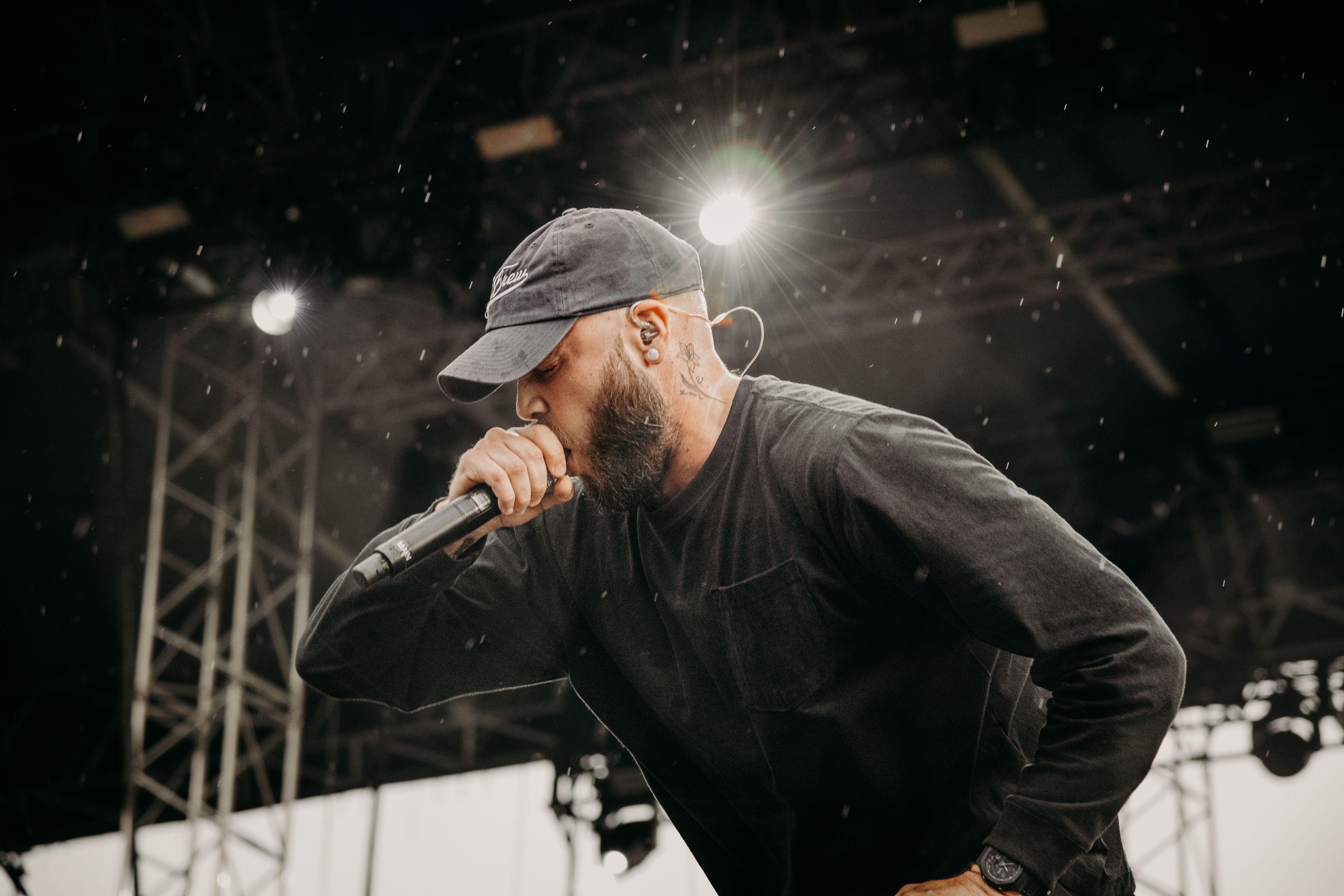 Auch mit neuem Line Up und trotz des Regens überzeugen Thy Art Is Murder am Wochenende die Dresdner Metal-Fans beim Park Waves Festival.